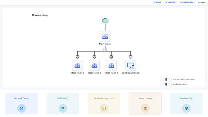 通过路由器与吸顶或面板 AP 的协同部署,配合集中管理平台,可轻松实现设备监控、策略配置及性能优化。