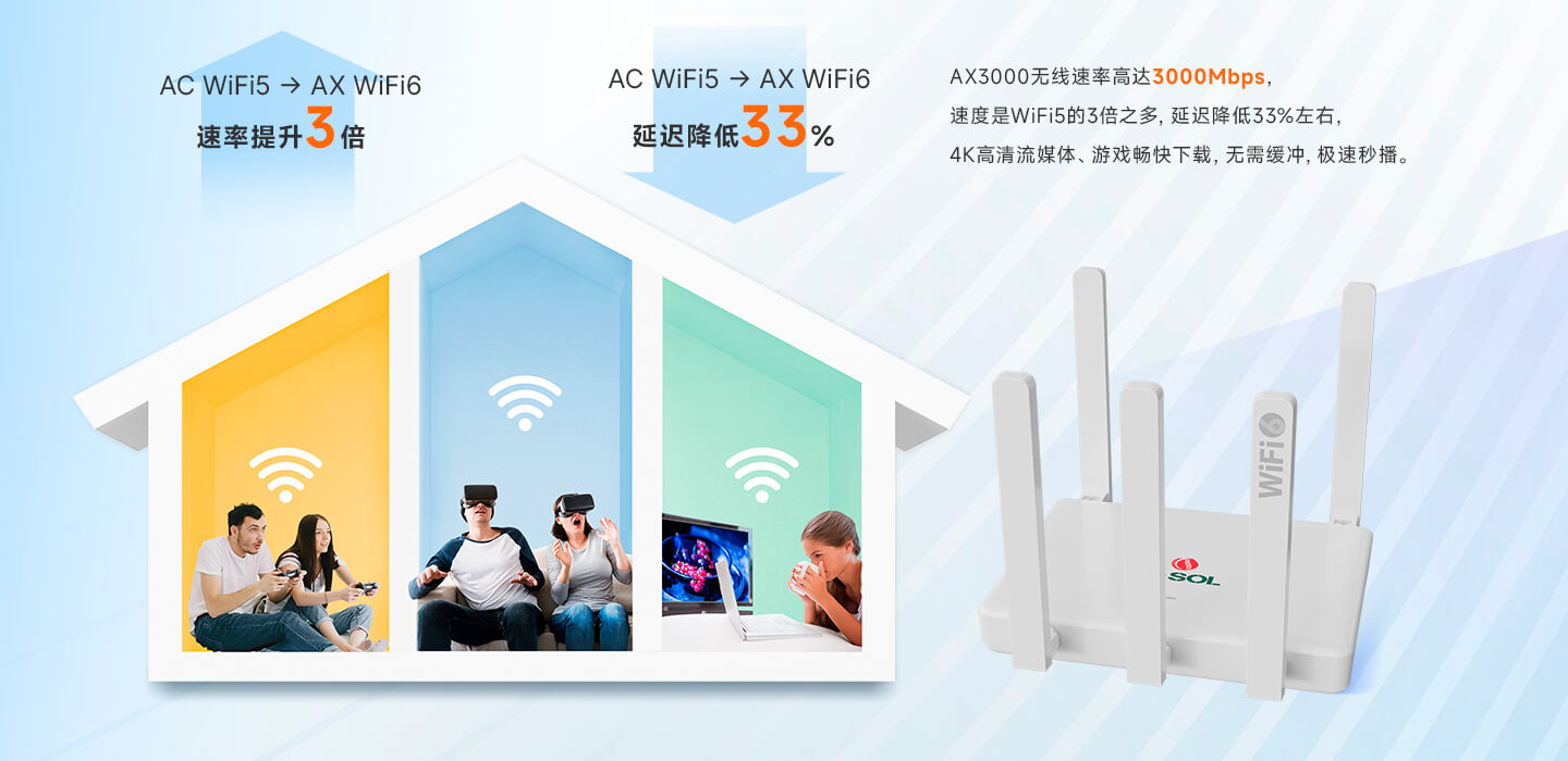 3Gbps高速无线,全屋千兆网络自由