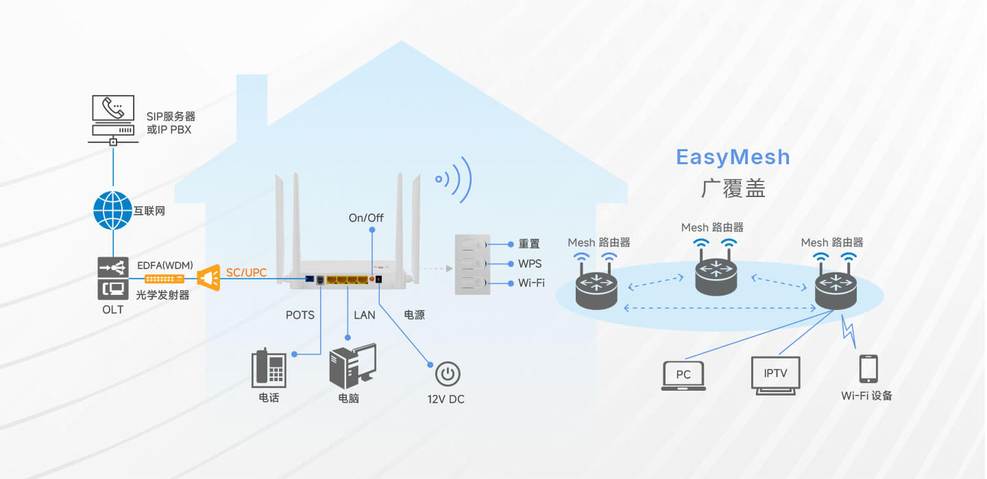 l支持OAM/OMCI,Telnet,WEB,TR069 l支持VSOL OLT对HGU功能的全面管理 |