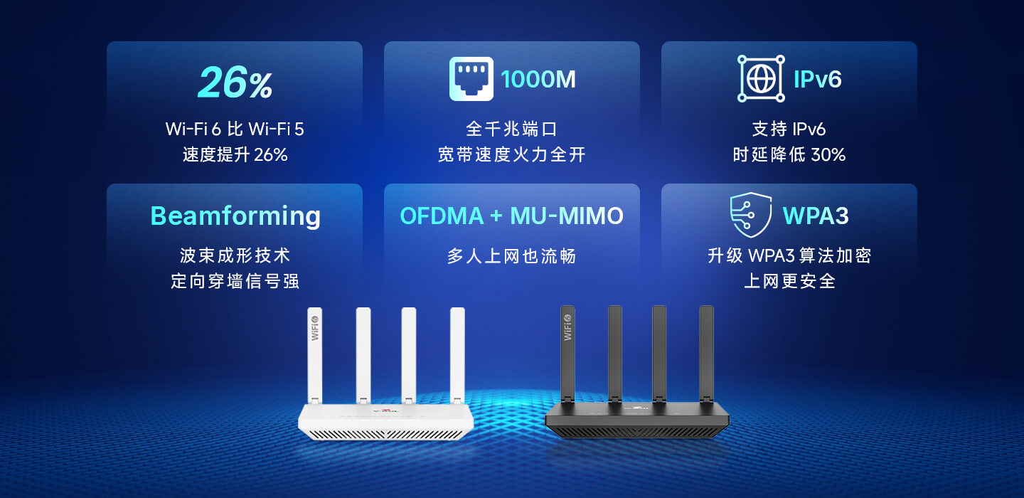 轻松应对高负载和多设备连接,无线网络连接更快、更稳定、更智能。