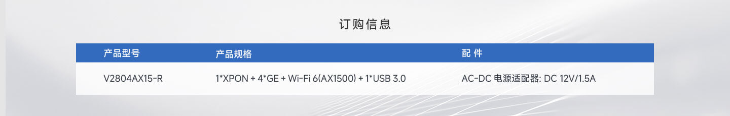 1XPON + 4GE + 1USB 3.0 + Wi-Fi 6 |