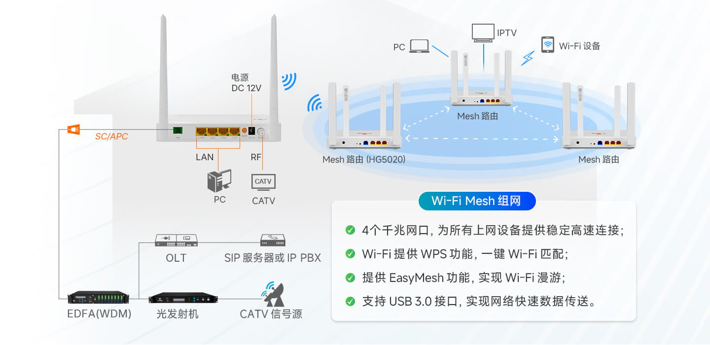 4GE + Wi-Fi 5 + USB 3.0 + CATV(可选) |