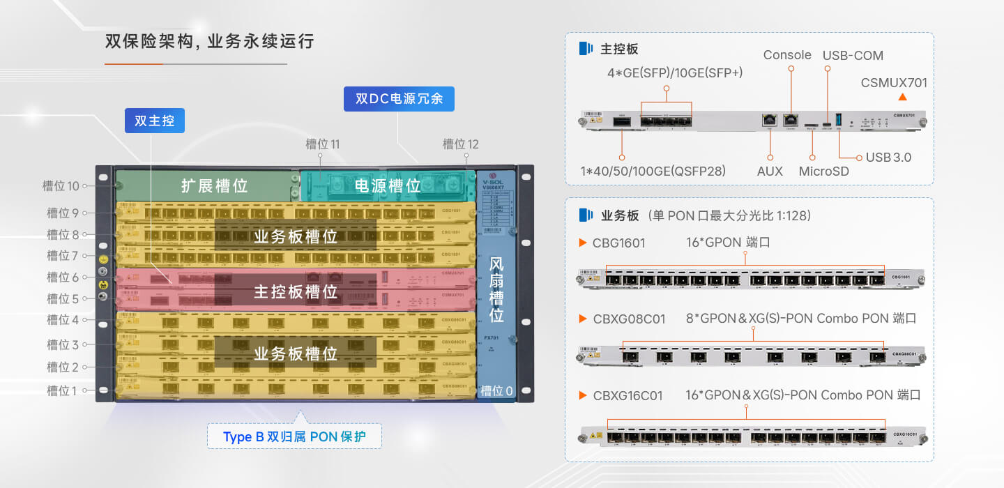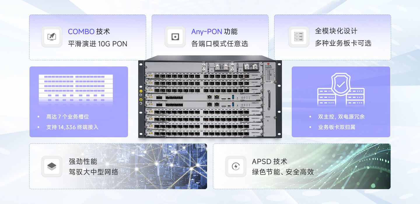 GPON: 上行 1.244Gbps, 下行 2.488Gbps XG-PON: 上行 2.488Gbps, 下行 9.953Gbps XGS-PON: 上行 9.953Gbps, 下行 9.953Gbps |