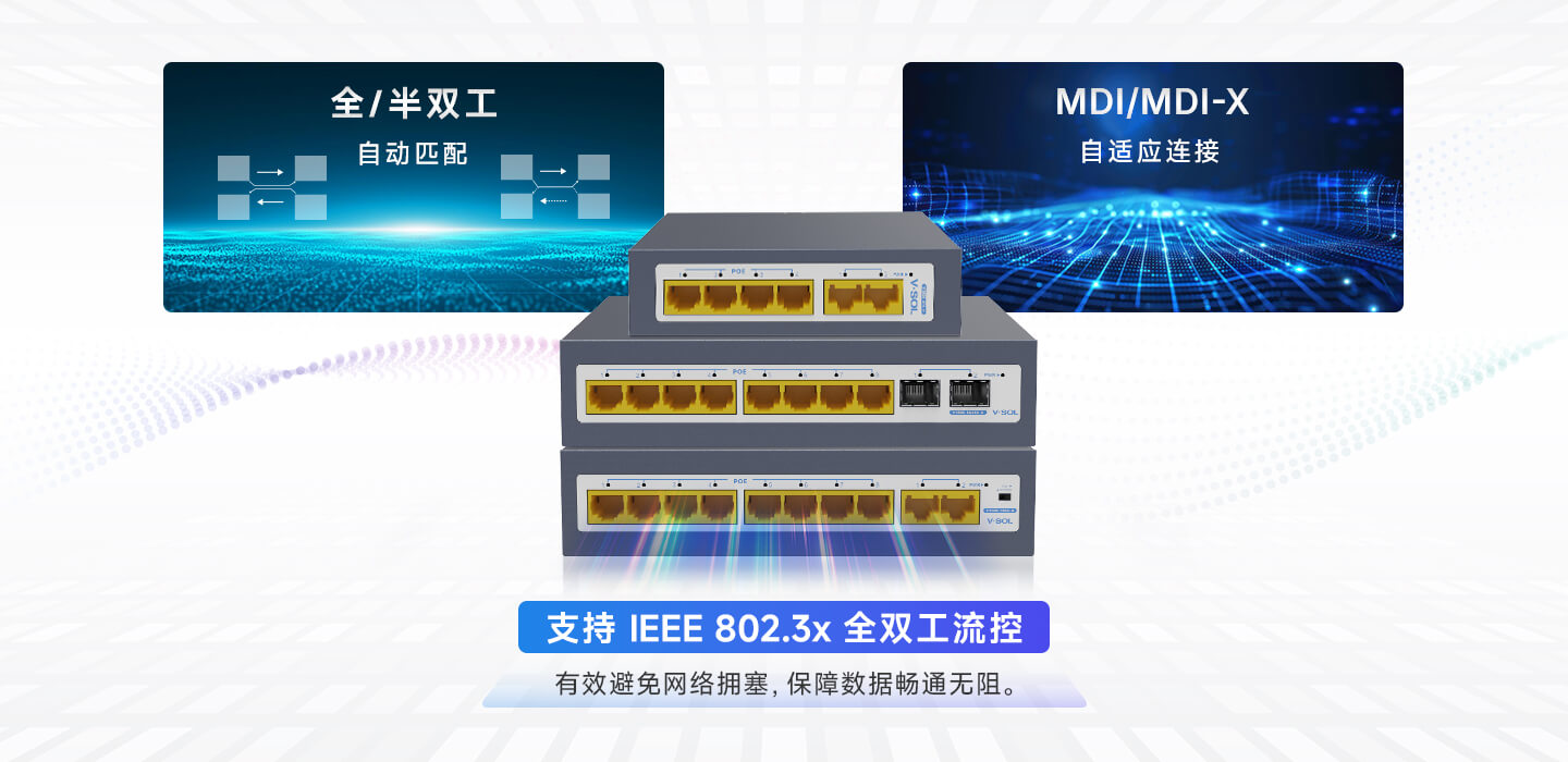 自动匹配全/半双工,MDI/MDI-X自适应连接